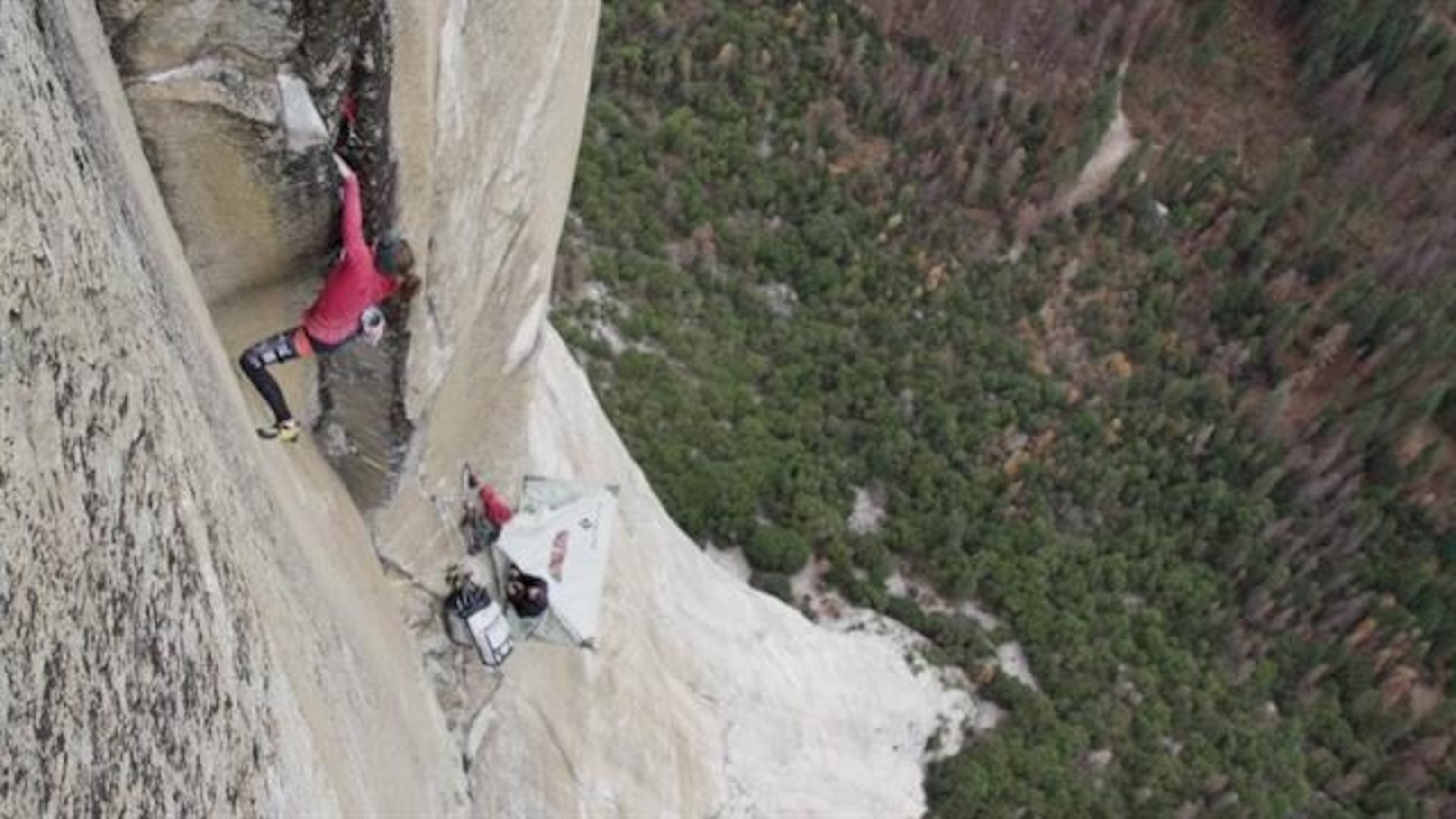 Fast forward back to El Capitan. The summit was tantalizingly close—just 300 feet above. It was now past midnight, and Zangerl was ready to head back down to the portaledge camp to call it a night. Larcher was patiently belaying, holding her weight on the rope as she rested in between attempts. She rested her head against the rock and closed her eyes. She noticed that particular body position felt strangely good. She jolted back into action and tried the move again. By pushing her head against the opposing corner of rock, Zangerl could move her foot. After all that, she had found the most unlikely way.