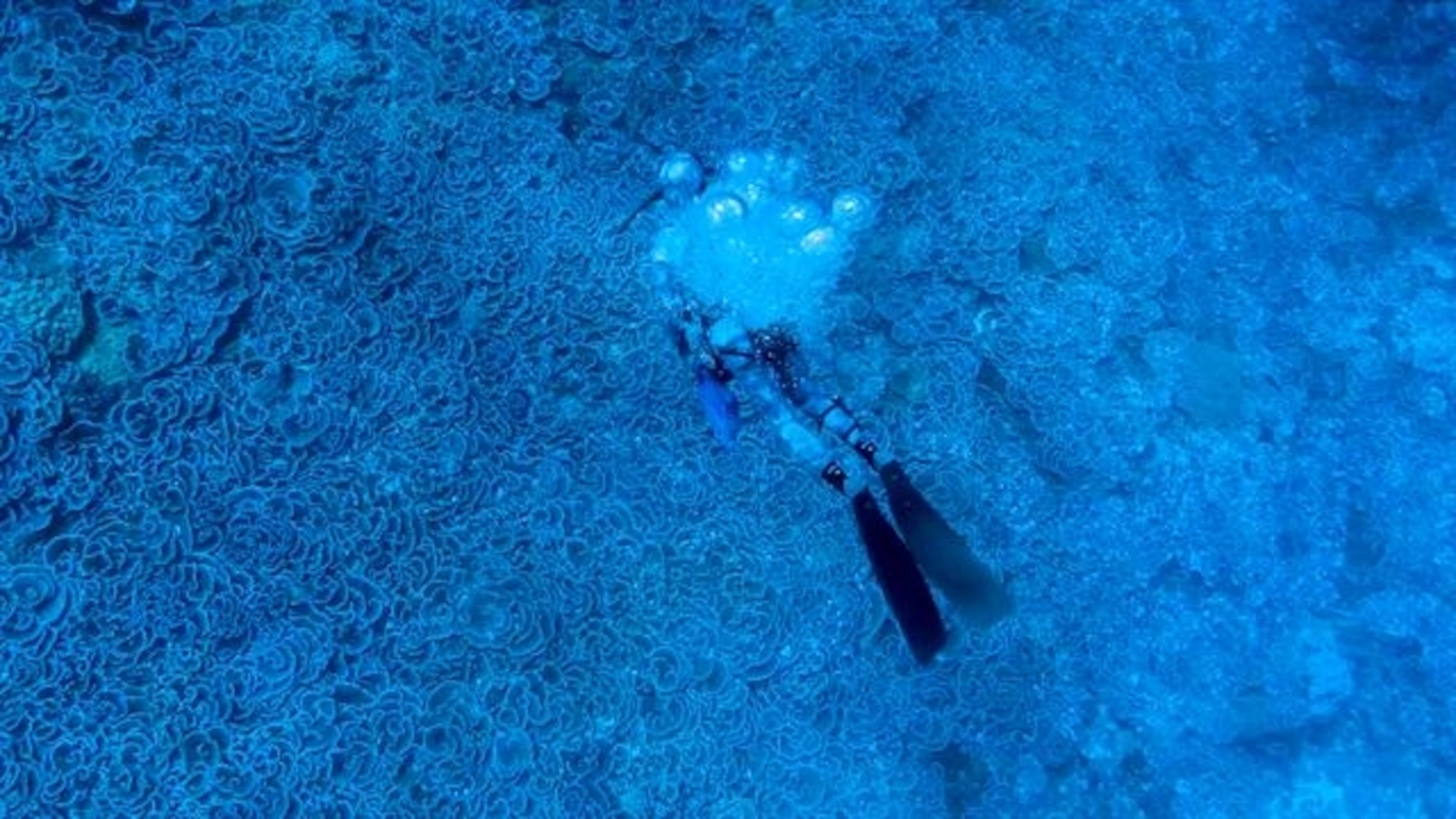 When I dived at Vostok, I thought my brain had short-circuited and I’d landed in wonderland. The reef was covered by light-blue corals that looked like giant roses—a garden of Montipora aequituberculata stretching as far as I could see. A closer look revealed dead Pocillopora, encrusted with coralline algae, under the Montipora.